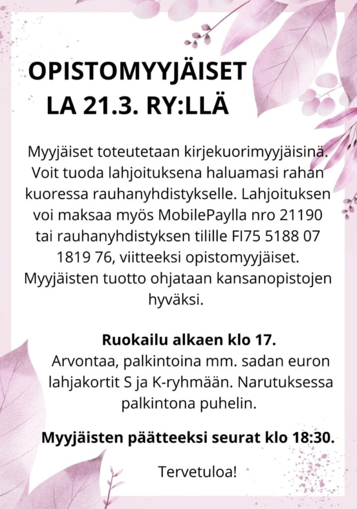 Linkki arvontaan: https://alajarvenrauhanyhdistys.mycashflow.fi/product/1/